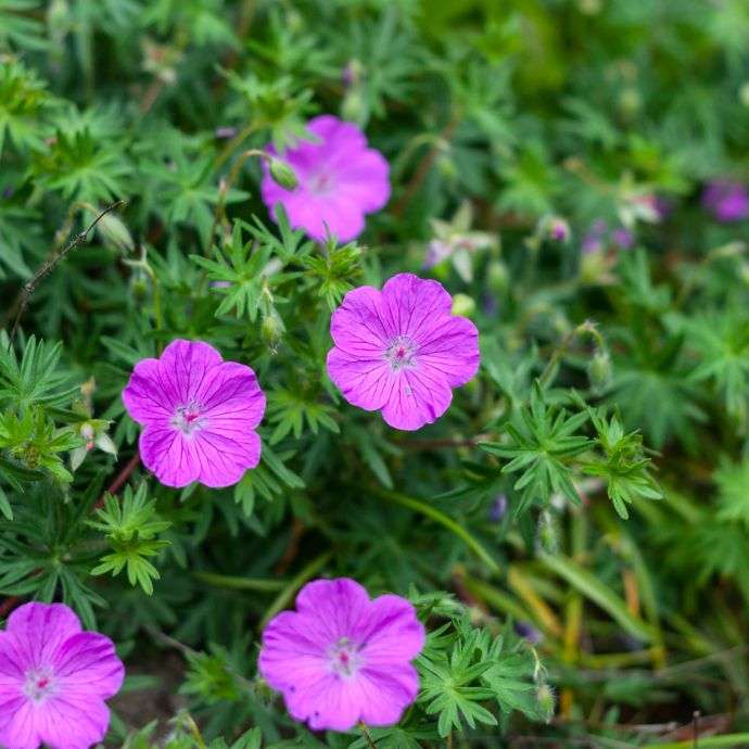 A compact perennial with neon-magenta flowers blooming from late spring to fall. Excellent for rock gardens and sunny borders.