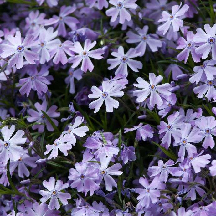 Low-growing carpet of spring blooms in pink, purple, or white. Great for slopes, rock gardens, and erosion control.